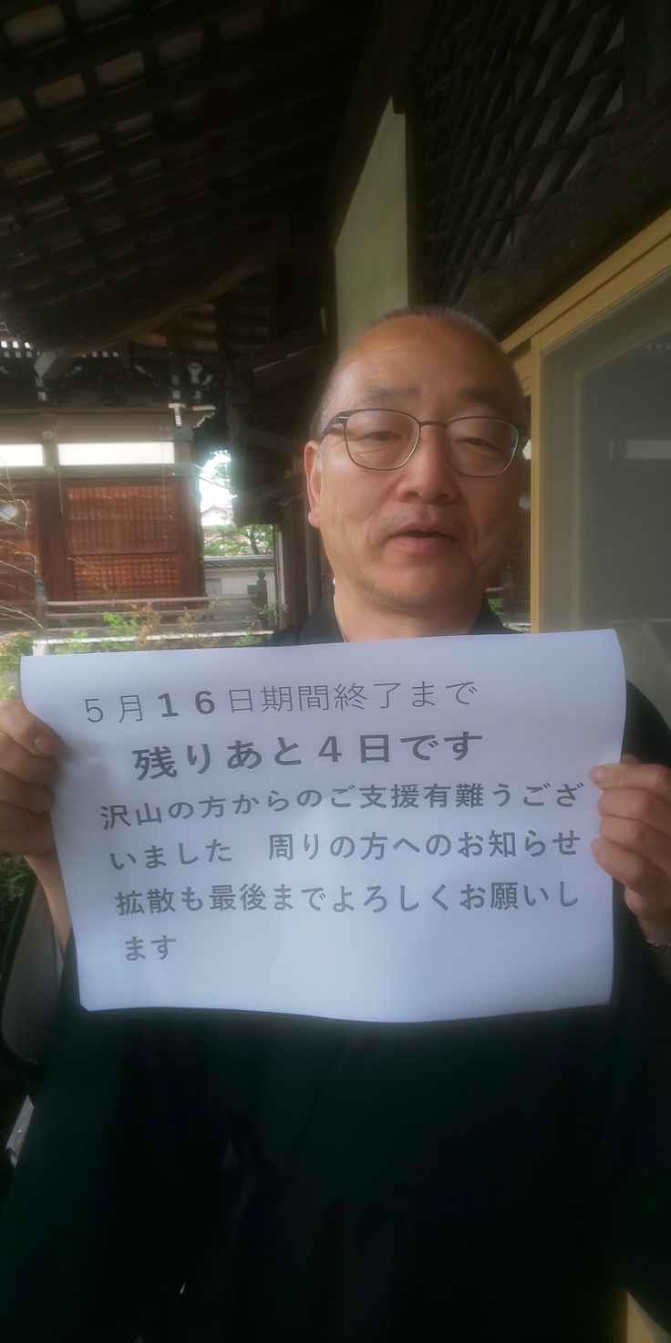 いつも鶴林寺をお支え下さいましてありがとうございます。3月18日から展開してまいりましたこのプロジェクトもいよいよ最終日が近づいてまいりました。多くの方々のご支援を受けて今日までに490万円近い資金が寄せられています。第一目標300万円をちょうどひと月でクリアし、ネクストゴール500万円も達成目前となりました。寺内一同、重ねて感謝申し上げます。