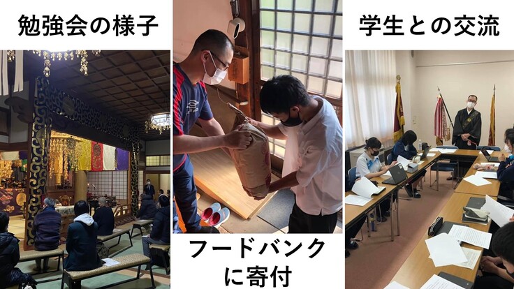 ②地元の高校生が運営するフードバンクに角鹿会の寺院からの寄付を行っています