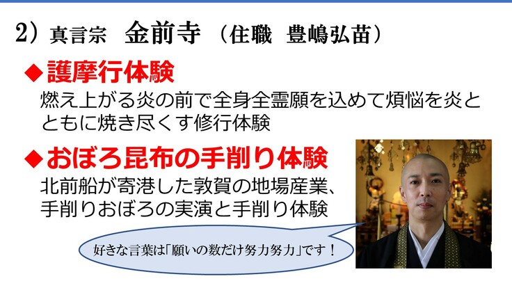 次の目標とは、角鹿会の6か寺におけるイベントの開催です。