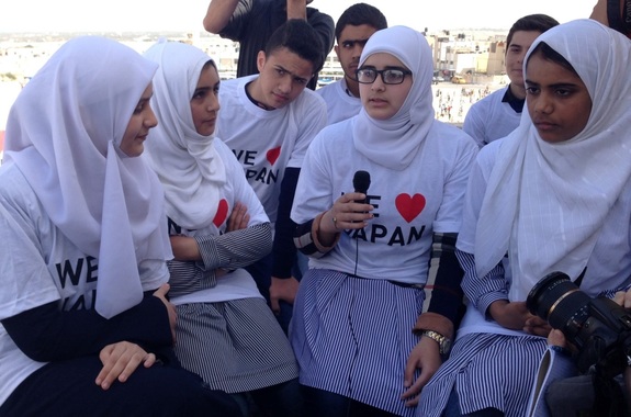 そして、紛争状態が続くパレスチナ自治区のガザでは、震災以来、毎年3月に1,000人以上の子どもたちが集まって、日本への絆を示す凧揚げが行われています。