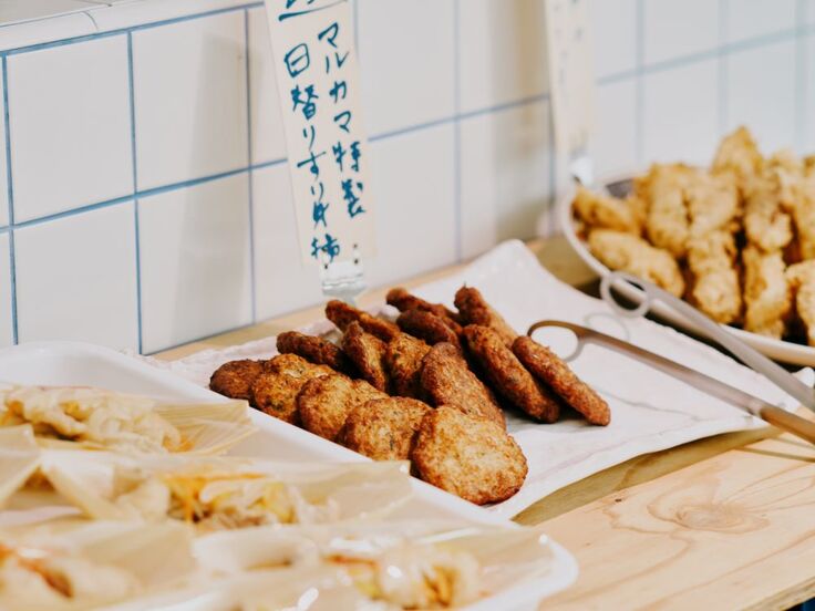 スタッフにはプロの料理人が2名おり、総菜も充実しています。定番は、日替わりのすり身揚げとキビナゴの姿揚げ、南蛮漬け。魚の入荷状況やその日の気温に応じて日替わりでつくっています。他にも刺身用のサクや、夕方からは日替わりの魚種でおつくりもお出ししています。
