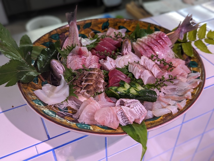 多様な旬の魚を盛り合わせます。お皿の持ち込みも大歓迎です! ※写真は過去の盛り合わせの一例