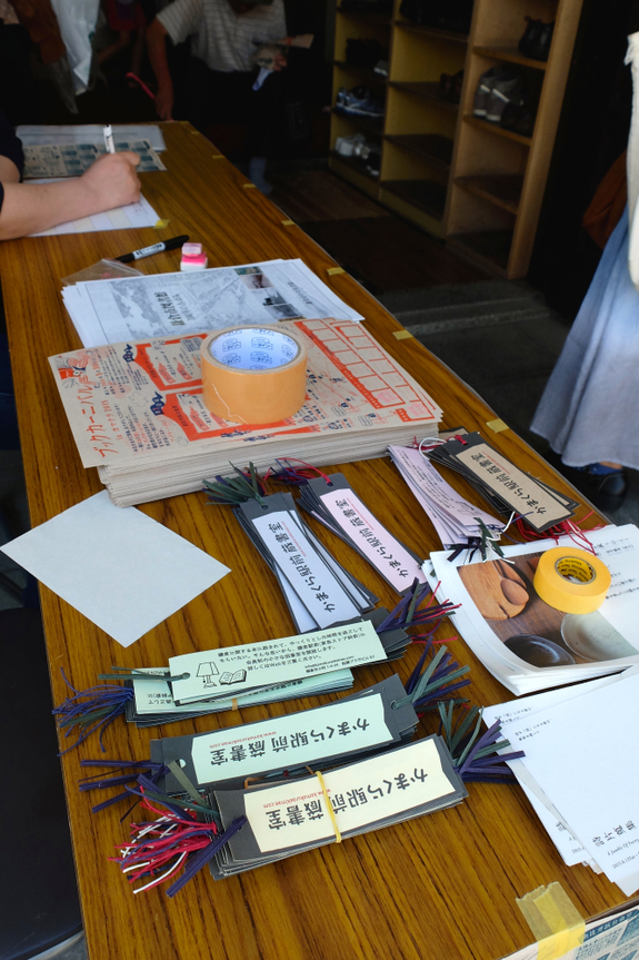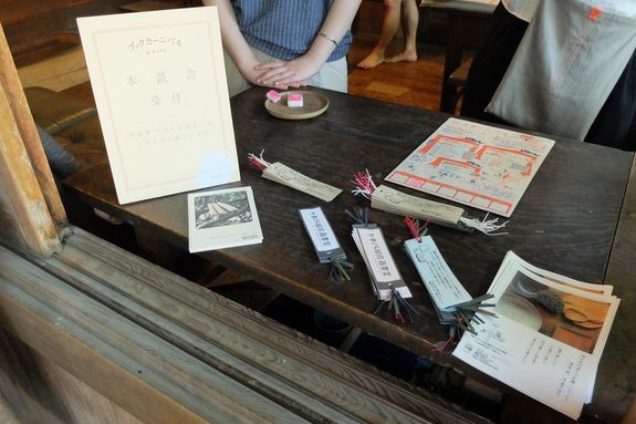 そんな中、「かまくら駅前蔵書室」のしおり型チラシを、由比ケ浜公会堂と古民家スタジオ・イシワタリの受付に置かせていただき、多くの方がお持ち帰りくださいました。
