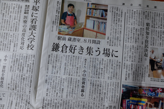 6月18日の神奈川新聞湘南版に、かまくら駅前蔵書室の記事を掲載していただきました。※神奈川新聞のサイト「カナロコ」でお読みいただけます。