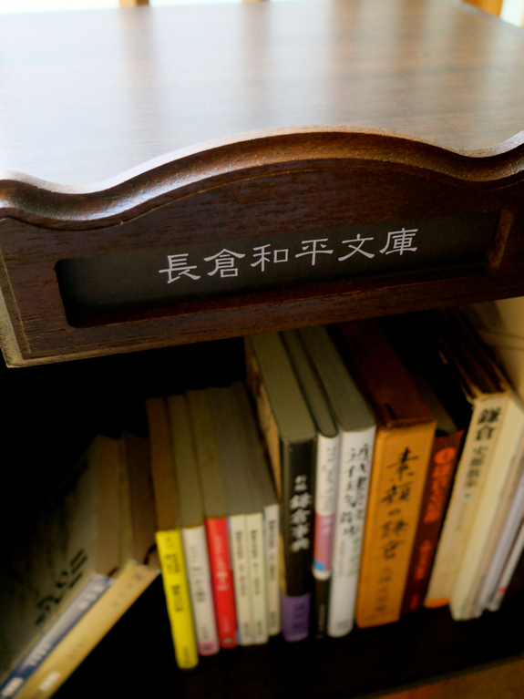 会員登録時に「贈書」いただく鎌倉に関する本(1冊以上)には贈書者の氏名が貼付されますが、置かれる場所は蔵書室側で、カテゴリー、特集、季節、気分(笑)などで少しずつ変えていく予定です。