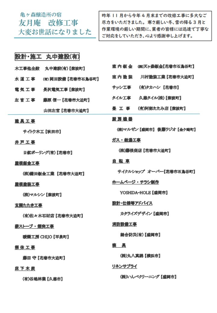 地域のチカラで完成!友月庵改修工事 大変お世話になりました