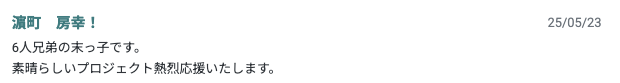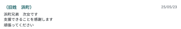 和男さんからご支援の後、立て続けにご兄弟の皆さまからご支援をいただきました。