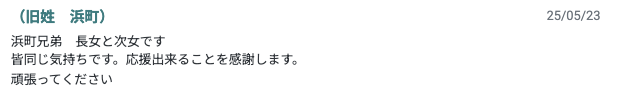 ご支援者様「濱町家の皆さま」から激励いただきました