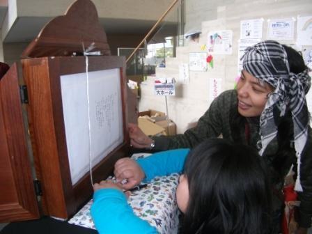 2011年5月5日、宮城県名取市の市民文化会館での活動のヒトコマ。