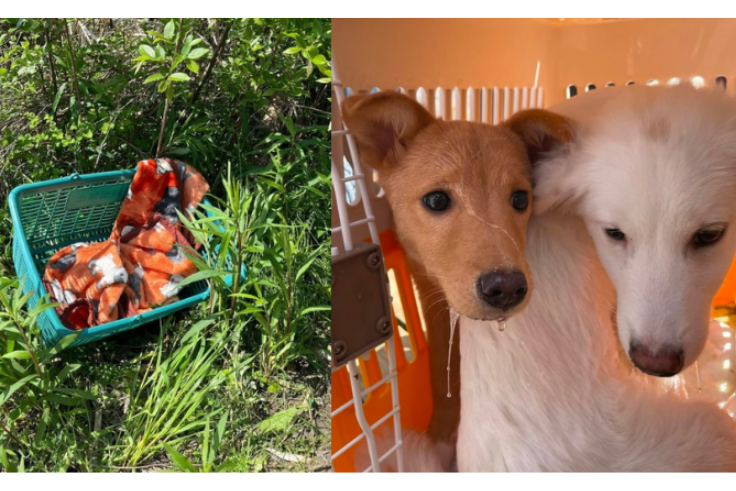 現場では、犬柄の毛布が入った買い物カゴがひっくり返っており、そのすぐそばの藪に子犬たちが。走れば追いつけない大きさだったため、囲い込みをして無事に捕獲。周囲の捜索や目撃情報の確認も行い、他に遺棄された子がいないことを確認し帰路につきました。