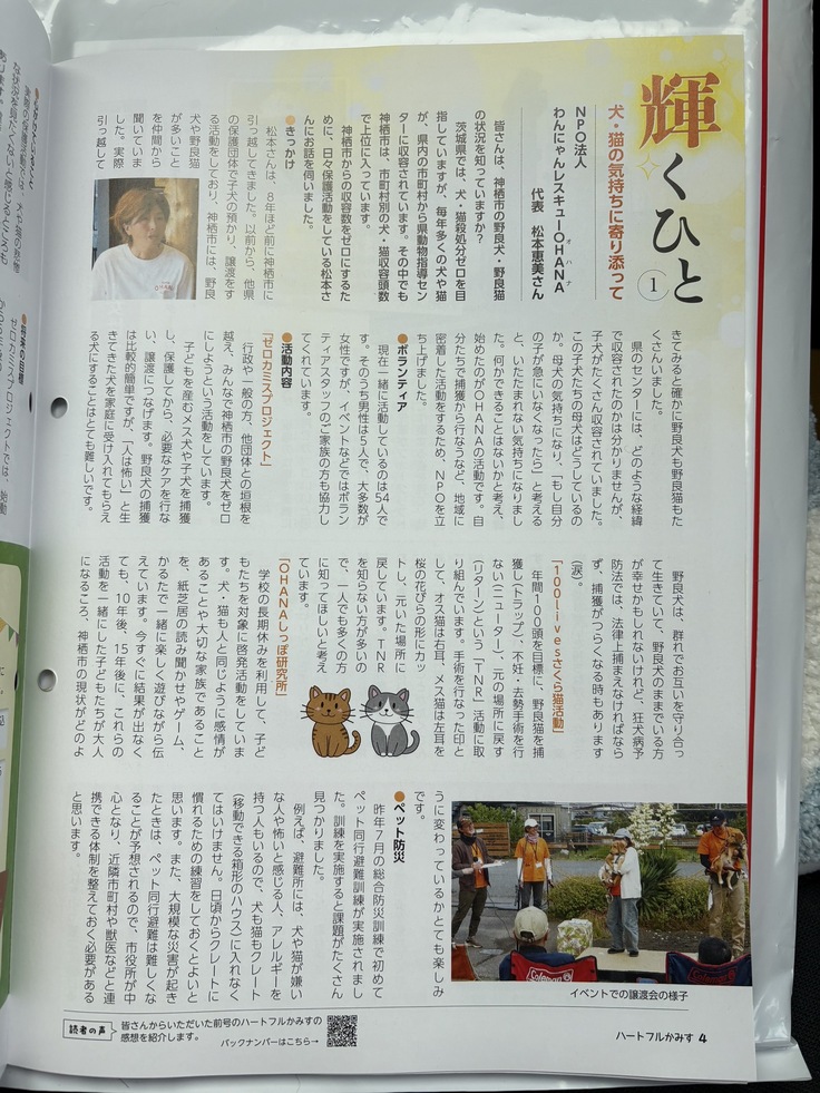 代表松本の熱い想いとOHANAの活動内容が1ページ半びっしりと載っています!