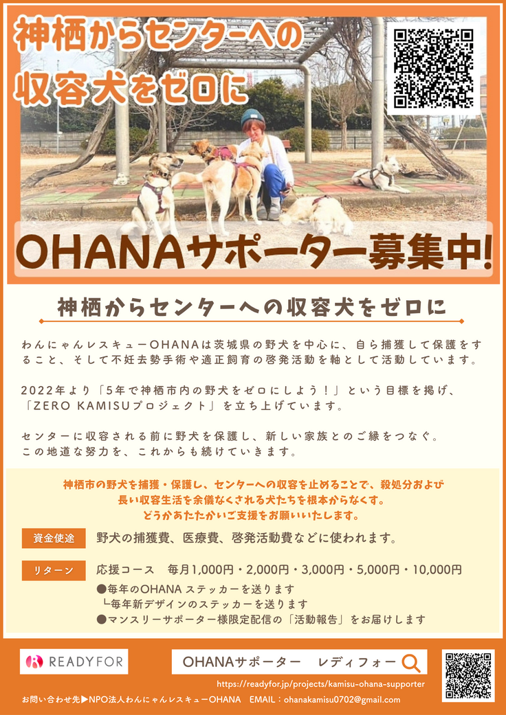 神栖からセンターへの収容犬をゼロに|OHANAサポーター募集中!