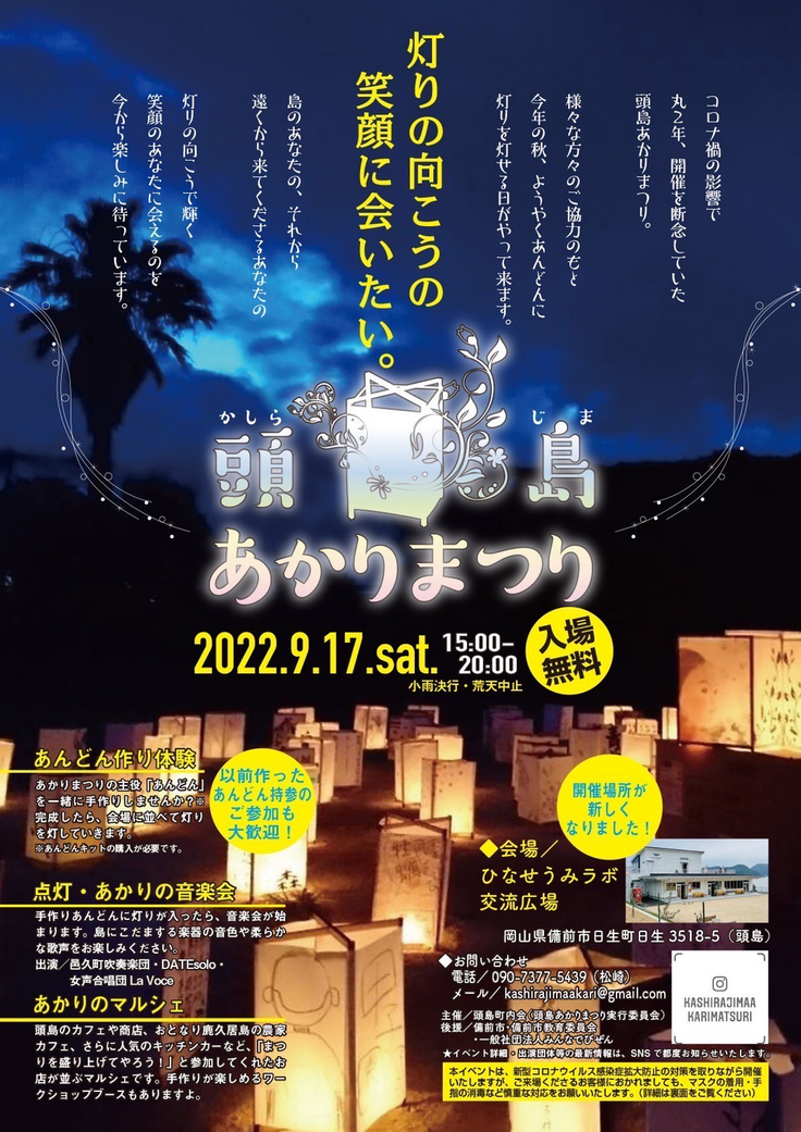 思えば2018年、頭島出身で小学校時代の同級生である松崎夫妻と私の間でなんてことない思い出話が膨らみ、まさかの手作りの行灯と音楽と島の美味しいものを楽しんでもらうイベント『頭島あかりまつり』を立ち上げることとなったのも、地域おこし協力隊として備前市に来られた移住者の方に知恵をいただいたのがきっかけでした。