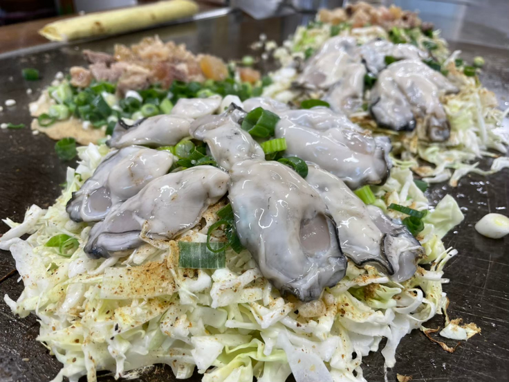 特に牡蠣の養殖が盛んに行われており「カキオコ(牡蠣入りお好み焼き)」が有名で、冬の牡蠣シーズンは特に多くのお客さんで賑わっています。