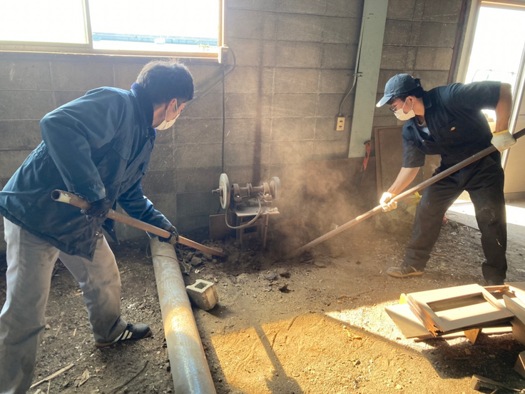 元鉄工所の石炭や道具などが残っており、移住仲間たちの力を借りながら片付けをしました。片付けるたび、どんどんと建物が息を吹き返していきました。