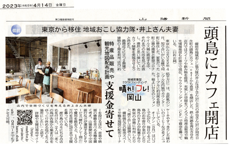 4/14(金)の山陽新聞朝刊にcaféかも食堂の記事が掲載されています!
