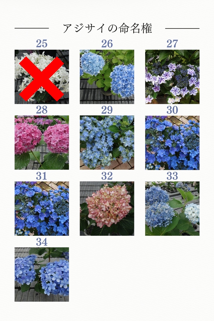 未命名のアジサイは全34種あります。以下に画像を掲載いたしましたので、