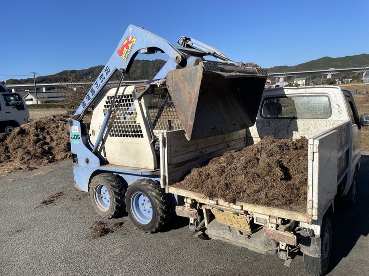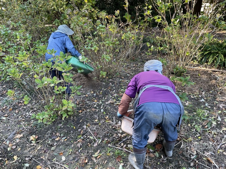 そこで草刈りの手間を減らすため、アジサイ畑全体に木材のチップを敷き込み草抑えにすることにしました。