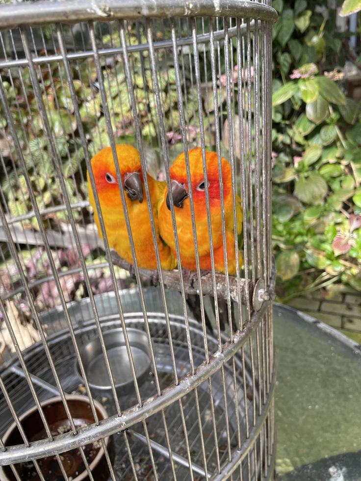 姉妹園の富士花鳥園産まれの2羽はとっても仲良し♡ よくお客様に話しかけてもらえますが残念ながらおしゃべりはできません。