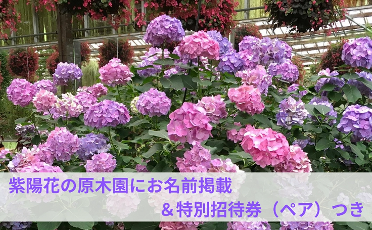 H|【応援&来園:3万円】アジサイの原木園にお名前掲載&特別招待券(ペア)つき