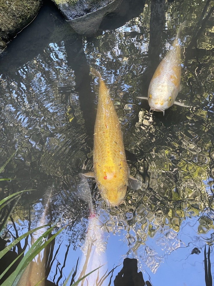 お次はお屋敷の中池にいる鯉ちゃんたちです。 前回のプロジェクトで作られた桑源亭からもご覧になれます。 お屋敷内でエサも販売中です。