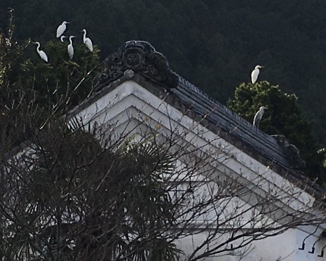 シラサギ6羽に1羽はアオサギでしょうか? 加茂荘では様々なサギたちが沢山いますが、こんなに1か所に集まってるのは珍しかったです。 お次はこちら