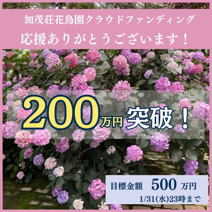 「加茂荘花鳥園:安らぎの空間を守り継ぐ。古寺周辺をアジサイの原木園に」はついに200万円を突破しました。
