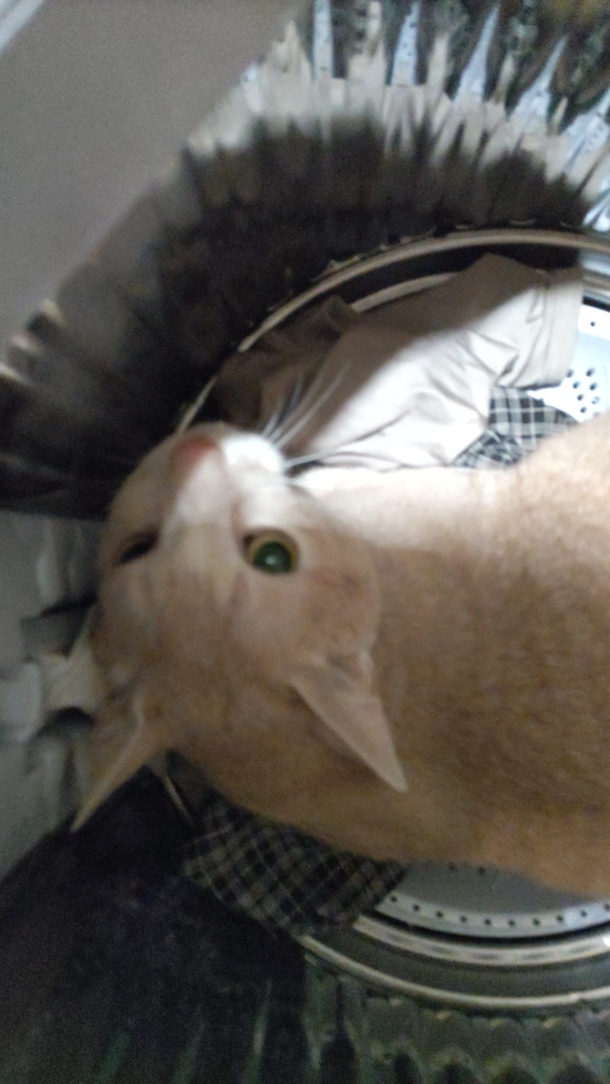 洗濯機に隠れていた時見つかった💦って顔してます😂😂