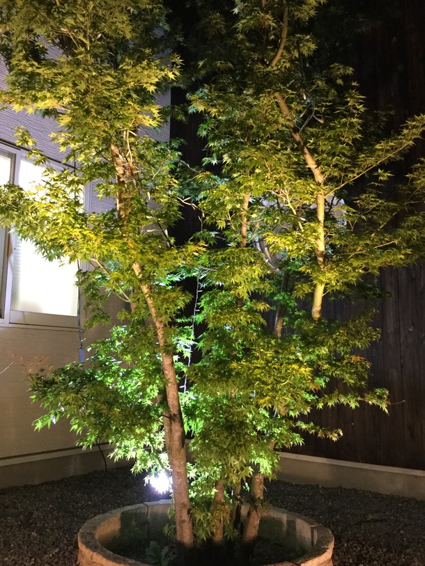 画像は当店のシンボルツリーの紅葉のライトアップです。