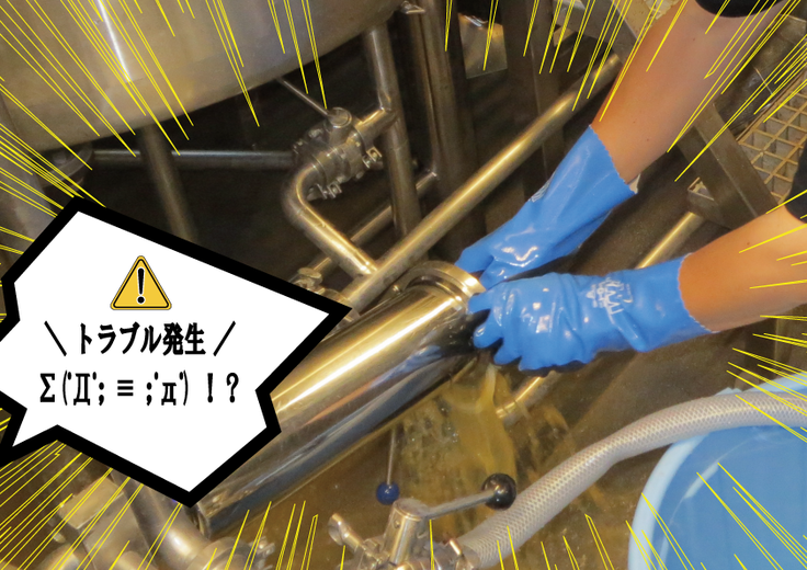 パイプラインのろ過機が青みかんの粕で目詰まりしてしまい、、貯蔵タンクへスムーズに移動せず、この目詰まりが偶然にも‥ ”ろ過する仕事”をしてしまい、私達が思ったビールの色合いで貯蔵タンクに移動してくれません。(;’∀’)