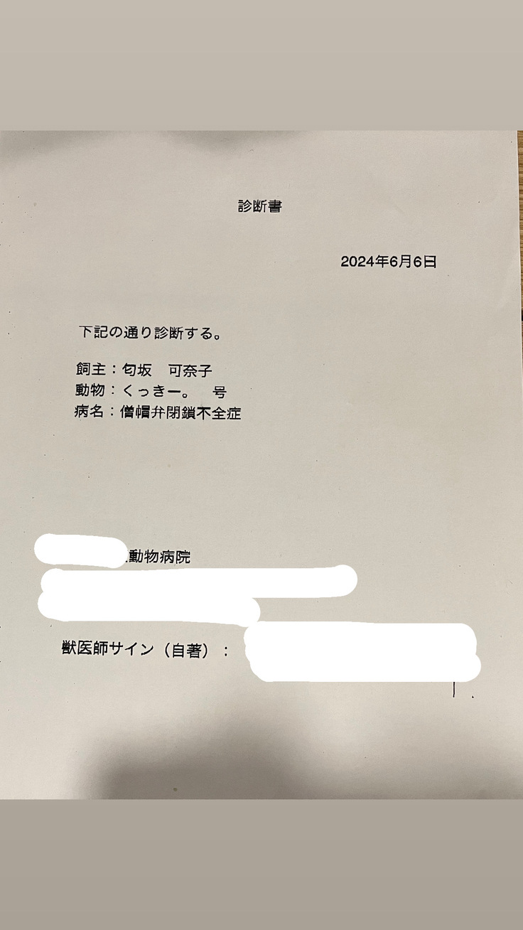 そんなくっきー。が心臓病になりました。
