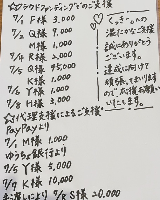この度はくっきー。への温かなご支援を皆さま誠にありがとうございます。