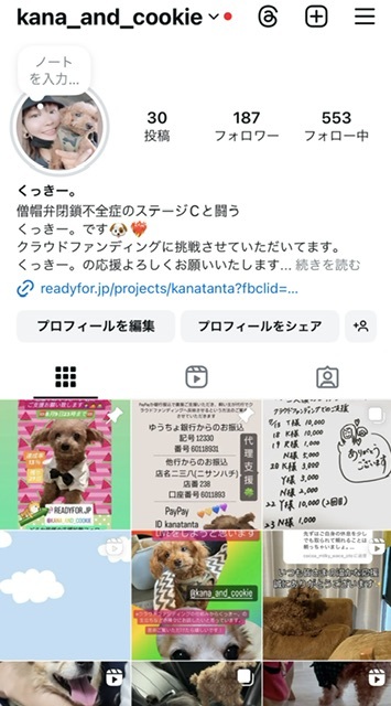 ご支援をいただいてきちんどお礼をお伝えしたいので、可能でしたらくっきー。のInstagramの方でもメッセージいただけたらとても嬉しく思います!