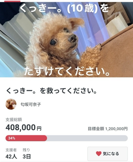 くっきー。のクラウドファンディングが残りわずか3日となってしまいました💦