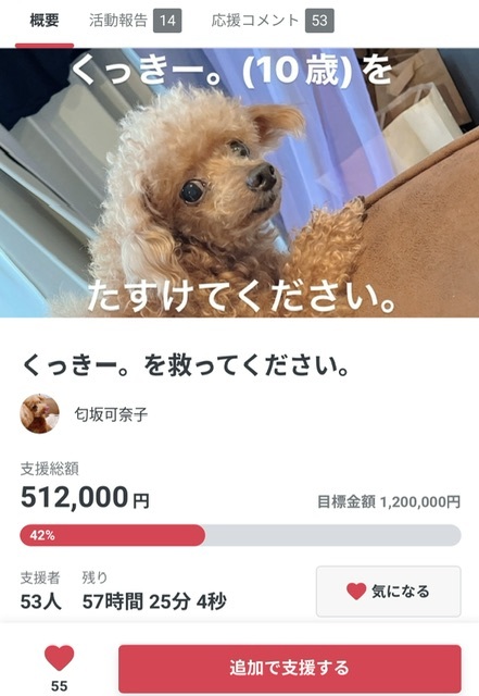 くっきー。に1日でも早く手術を受けさせてあげられるよう、どうか皆さまのお力を貸していただけないでしょうか🙇♀️💦
