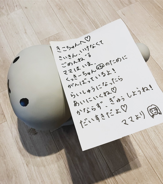 まだ字は読めないけど、パパに読んでもらおうと思って書きました☺️