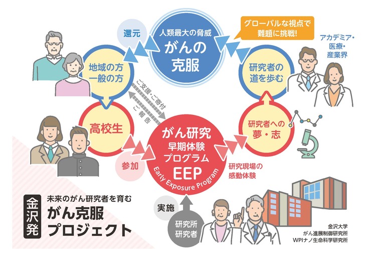 この度、私たちは、金沢大学ナノ生命科学研究所と共同で、高校生を対象とした「がん研究早期体験プログラム(がん研究 Early Exposure Program:がん研究 EEP)」を企画しました。高校生にリアルな研究の現場を紹介する人材育成プログラムです。