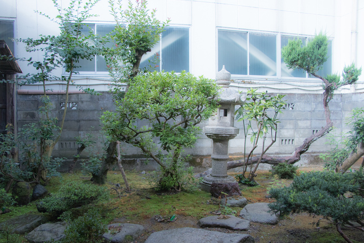 Japanese-style backyard reminiscent of a dry landscape garden that has been carefully taken care of by the landlord. A deck that protrudes from the porch into the garden will also be installed for everyone in the space to enjoy and relax.