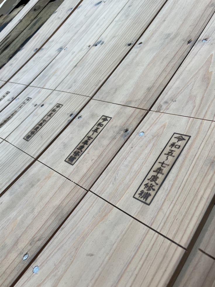 令和四年の落雷による被災で焼けて黒くなっている箇所。それもまた『歴史の一部』。