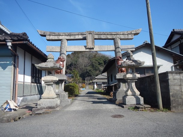 飯岡神社入口(鳥居・参道) 平賀元義歌碑