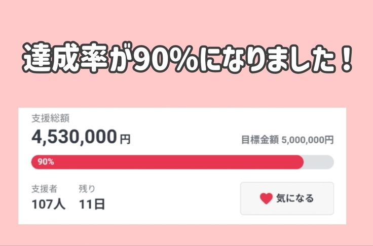 皆さまからたくさんの温かいご支援をいただき、達成率が90%になりました!