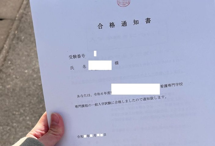 教えていただくまでは独学で勉強していました。ご縁があり先生には数学、小論文、面接を教えていただきました。分からないところは個人で教えてくださり、とても親身になってくれました。私は社会人入試、一般入試と落ち、諦めかけたり落ち込みましたが、その度に励ましの言葉をいただきました。頑張っている自分を褒めてあげて、信じてと何回も言ってくださるので、最後の一般二次は前向きに試験に向き合うことができ合格しました。支援してくださった方々と先生のおかげで、受験対策をすることができました。これから3年間は大変だと思いますが、どんな時でも挫けず、患者さんがその人らしい人生を送れるように、知識・技術・態度をしっかりと身に付け、社会に貢献していけるように頑張ります。