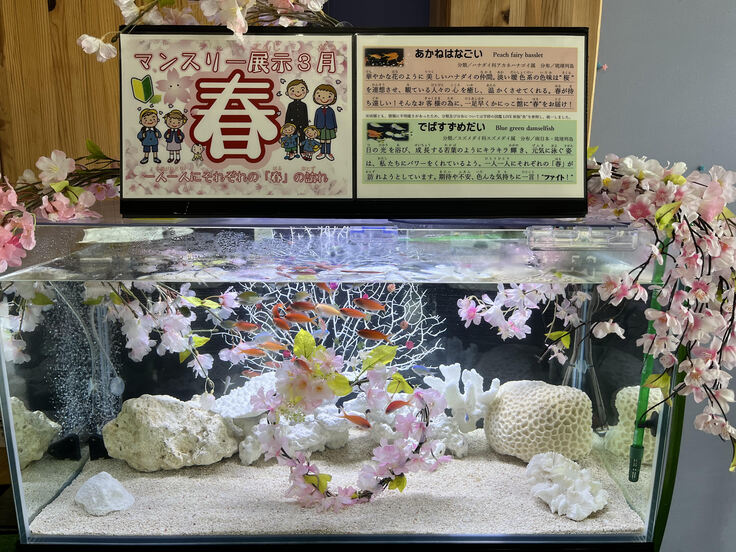 かにっこ館のマンスリー水槽は、色んな「春」が詰まっています!🌸
