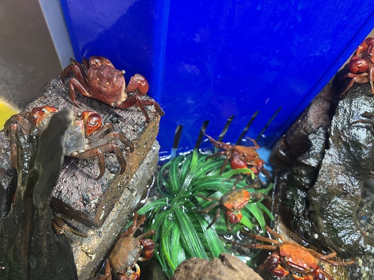 今回は、常設展示の人気者「アカテガニ」「ベンケイガニ」をご紹介。