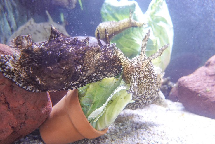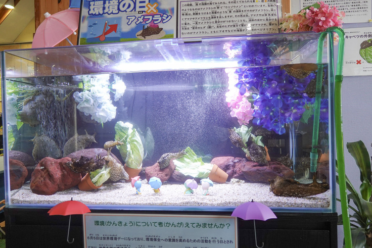 かにっこ館、今回のマンスリー水槽はアメフラシを展示しています。