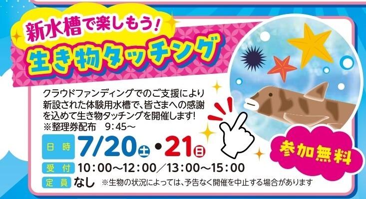 今週末は新たな体験水槽で、生き物タッチングイベントを実施します。