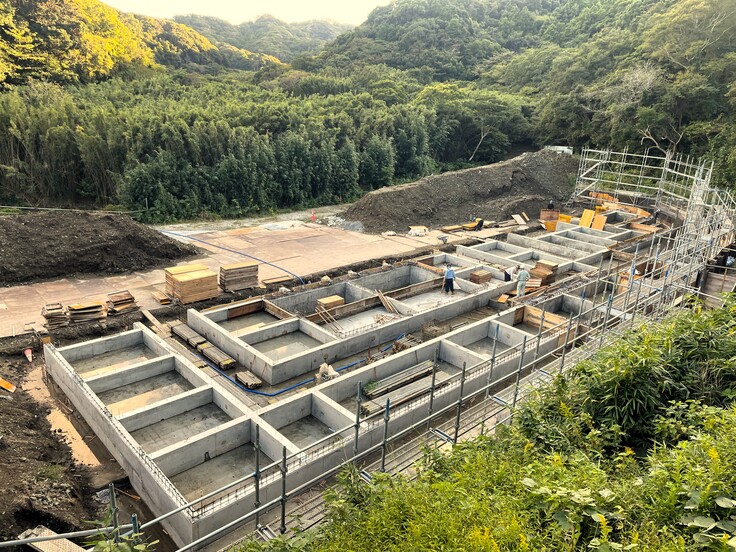 新棟建設現場では、基礎工事が進んでいます。