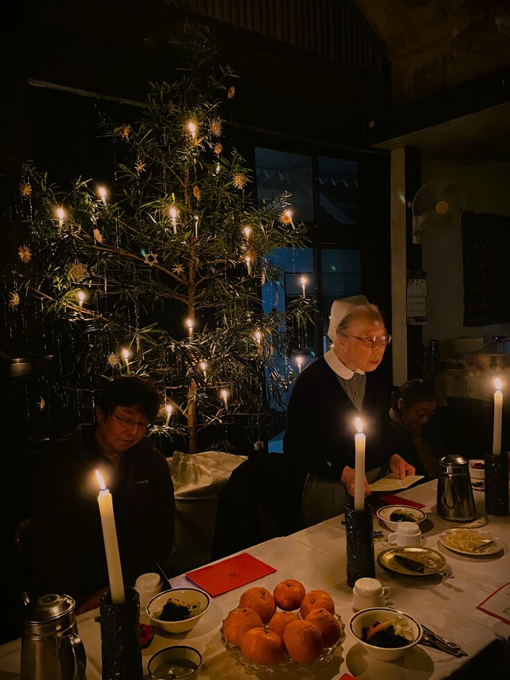 世界のあちらこちらで悲惨な争いが繰り広げられ、傷ついた人々、空腹を満たすことができない人々がたくさんいることに思いを馳せ、その中で、私たちはこのようクリスマスを祝うことができることに、皆で感謝の祈りを捧げました。