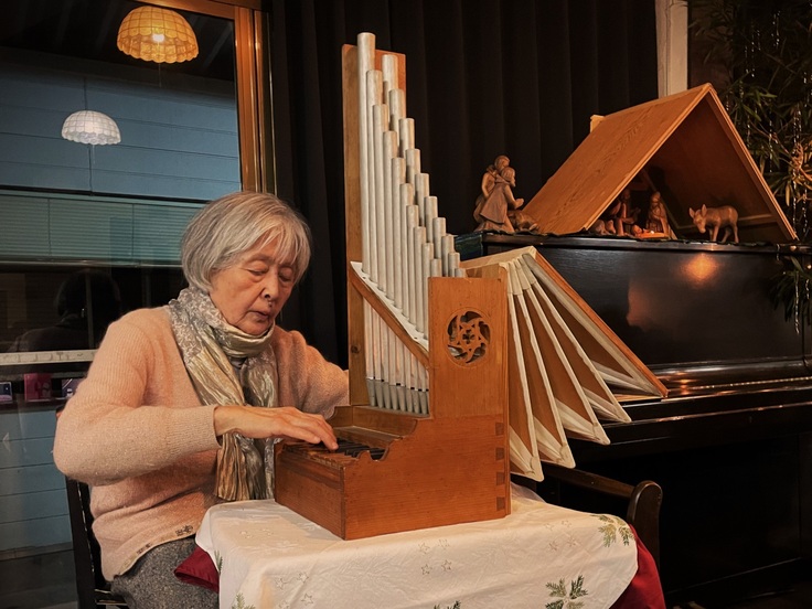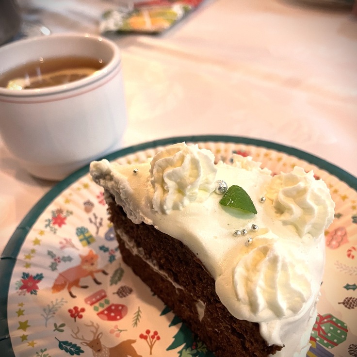 そして、今年もていねいに煮込まれたビーフシチューや、製菓班が心を込めて焼いたクリスマスケーキをいただき、アドベントの期間中に歌ってきた歌の数々を歌い、練習してきた音楽演奏を楽しむことができました。