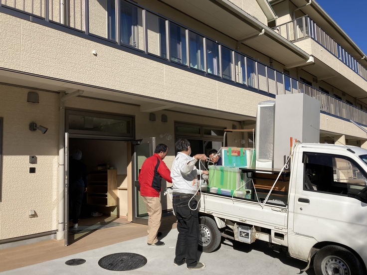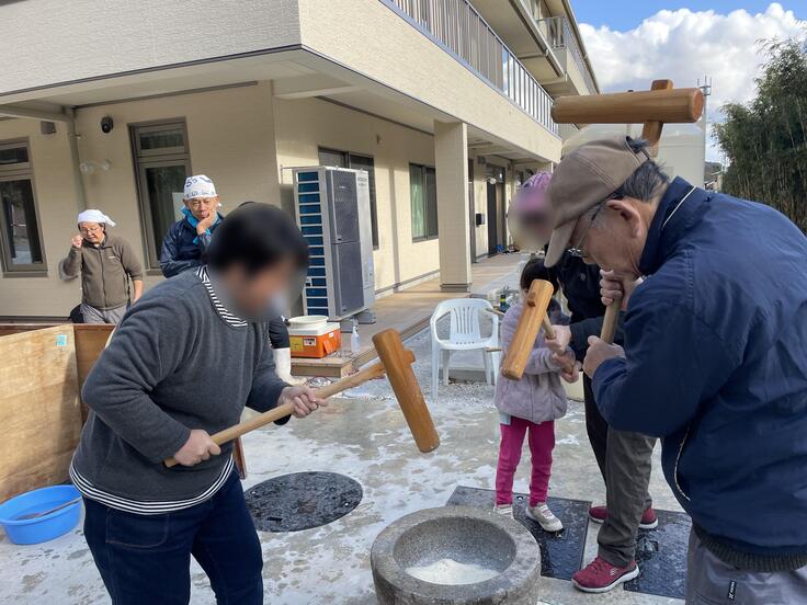 その後、12月中旬には、多くのボランティアの方々にもお手伝いいただきながら、利用者さんの引っ越しが慌ただしく行われました。そして、かにたの大切な行事であるクリスマスや、年末恒例のお餅つきも、新棟で無事に行うことができました。